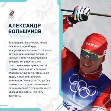 俄羅斯奧委會(huì)官方網(wǎng)頁(yè)上發(fā)布了在北京冬奧會(huì)越野滑雪男子雙追逐賽上獲得金牌的俄羅斯奧委會(huì)代表團(tuán)選手亞歷山大·博利舒諾夫的獲獎(jiǎng)感言。他說(shuō):“有些難以置信,當(dāng)我滑到最后一圈時(shí)我的眼淚瞬間涌出,我拿到了金牌。我想說(shuō),感謝中國(guó),讓我有機(jī)會(huì)在此成為奧運(yùn)冠軍?!?/p>