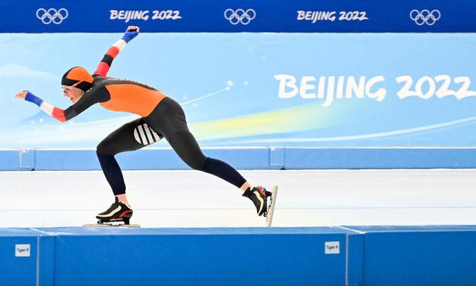 2月5日,冠軍荷蘭選手伊雷妮·斯豪滕在速度滑冰女子3000米決賽中。新華社記者 王菲 攝