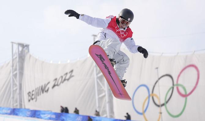 2月9日,日本選手平野步夢在單板滑雪男子U型場地技巧資格賽中。新華社記者 牟宇 攝