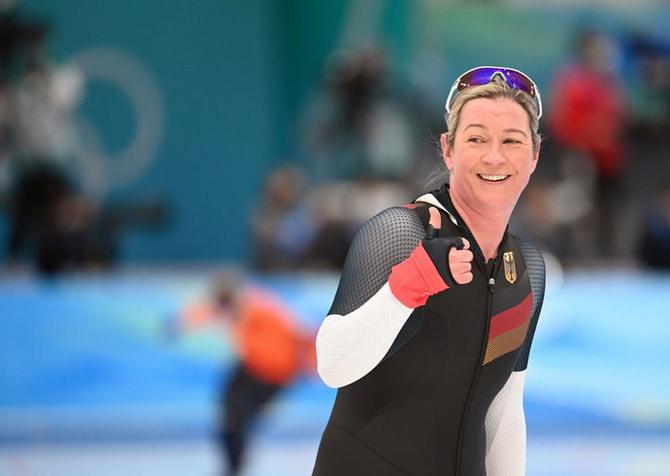49歲,歷史上年紀最大的女子冬奧選手;八屆,歷史上參加冬奧會次數(shù)最多的女運動員;在過往七屆中,總共拿下5金2銀2銅——德國人克勞迪婭·佩希施泰因到達速度滑冰女子3000米終點線時,高舉雙臂,迎接屬于自己的“第一”。