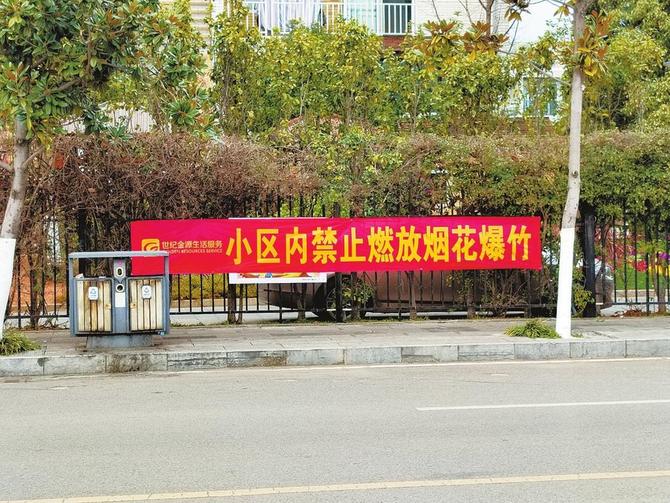 小區(qū)懸掛禁止燃放布標(biāo),安全第一。