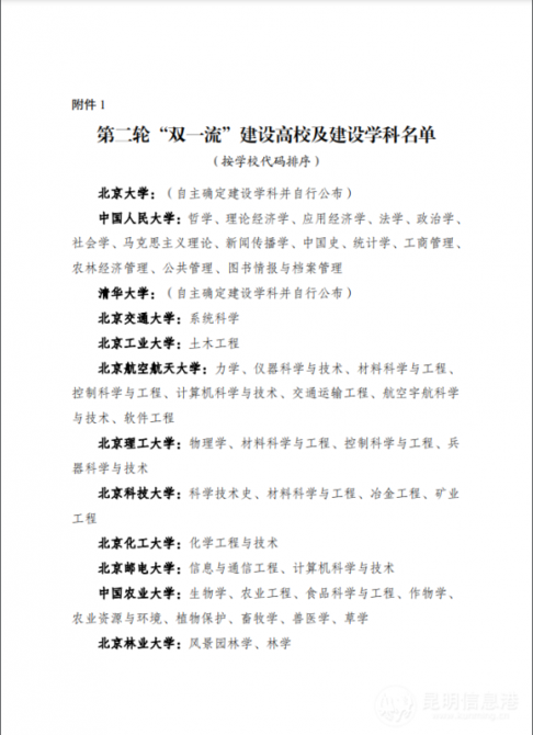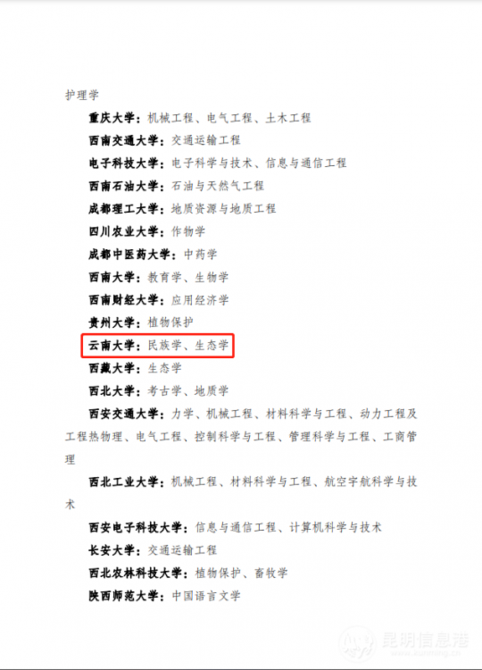 昆明信息港訊 記者姚仲恒 據(jù)教育部網(wǎng)站2月14日消息,由教育部、財(cái)政部、國家發(fā)展改革委印發(fā)《關(guān)于深入推進(jìn)世界一流大學(xué)和一流學(xué)科建設(shè)的若干意見》,經(jīng)國務(wù)院批準(zhǔn),“雙一流”建設(shè)高校及建設(shè)學(xué)科名單更新公布,新一輪建設(shè)正式啟動(dòng),其中云南大學(xué)民族學(xué)學(xué)科、生態(tài)學(xué)學(xué)科進(jìn)入建設(shè)學(xué)科名單。