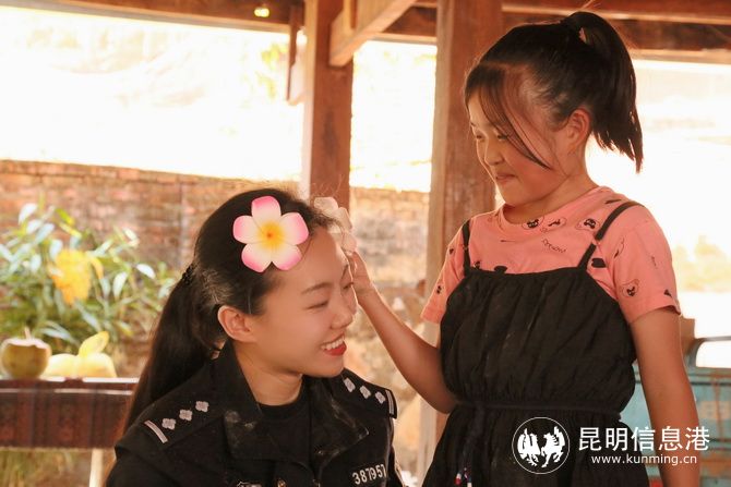 “叔叔阿姨保家衛(wèi)國,過節(jié)也陪不了自己的家人,在這里我們就是你們的親人,我要送阿姨雞蛋花發(fā)卡!”傣族小朋友玉罕滴,用沾滿糯米粉的小手為岳警官戴上頭飾,雞蛋花是西雙版納傣族群眾招待賓客最好的特色花朵,花語是“孕育希望和充滿愛”。