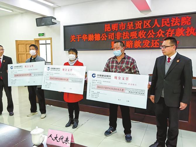2月14日,呈貢法院舉行退賠款發(fā)還大會(huì)。對(duì)退賠名單和退賠金額,呈貢法院和華勛德公司進(jìn)行了反復(fù)核對(duì)和確認(rèn)。