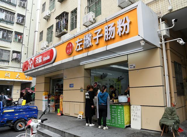 2月12日,水尾村居民在陳用發(fā)開的左撇子腸粉店消費。新華社記者梁旭攝