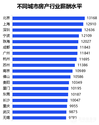 2021年第四季度,房地產(chǎn)行業(yè)平均招聘薪酬為10394元,高于當(dāng)年一至三季度水平,也高于全行業(yè)的平均薪酬10111元。分城市看,一線城市薪酬優(yōu)勢(shì)依舊明顯,北京的房地產(chǎn)行業(yè)平均招聘薪酬最高,達(dá)到13168元。其次是上海和深圳,分別為12910元、12636元。新一線城市寧波排名第四,平均招聘薪酬為12109元,超過(guò)了一線城市廣州。