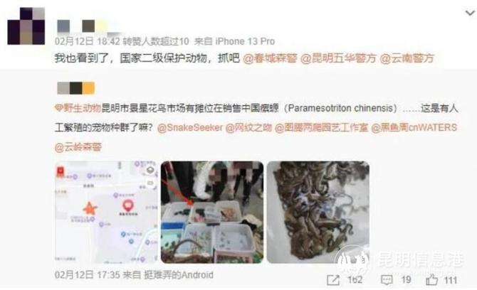 警方呼吁,之前若在該市場購買過該動物的市民請盡快到昆明市公安局五華分局森林警察大隊說明情況,并請上繳購買的中國瘰螈。