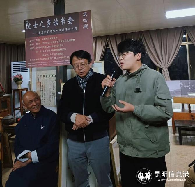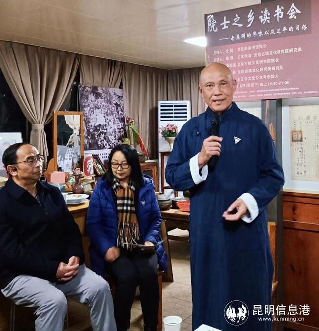 昆明信息港訊 記者李紅鸞 元宵節(jié)之后的2月16日晚上,由昆明市盤龍區(qū)文化和旅游局、盤龍區(qū)龍泉街道辦事處指導(dǎo),昆明市盤龍區(qū)龍泉古鎮(zhèn)文化研究主辦,盤龍區(qū)文物管理所、盤龍區(qū)圖書館、盤龍區(qū)文化館支持的第四期院士之鄉(xiāng)讀書會在龍泉古鎮(zhèn)文化研究院、老昆明雜書館舉辦。