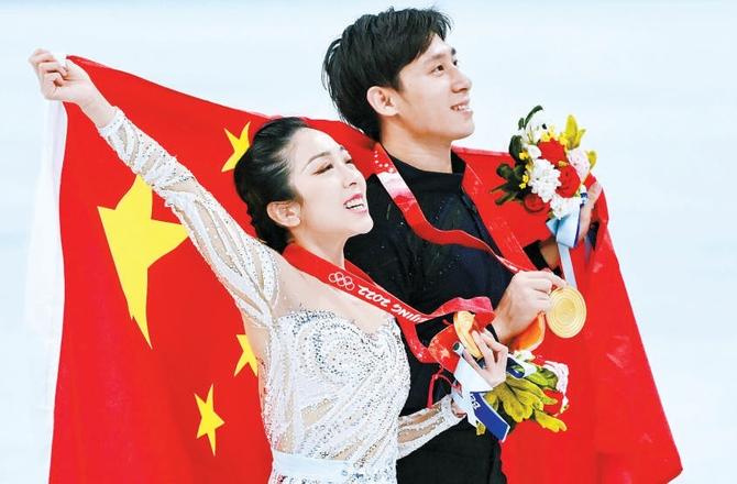 北京冬奧會(huì)花樣滑冰雙人滑決賽隋文靜、韓聰勇奪冠軍。圖源:新華社