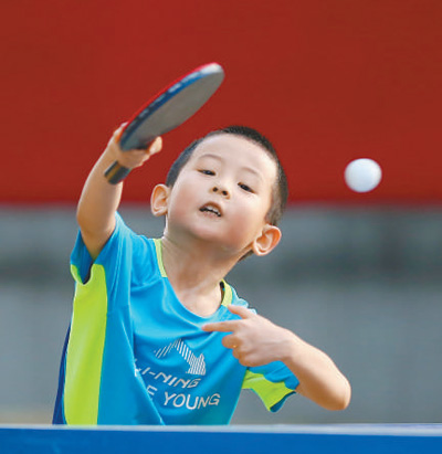 小朋友們利用課余時(shí)間,參加各種體育活動(dòng),體驗(yàn)運(yùn)動(dòng)樂趣。圖為一名小朋友在山東省滕州市弘道公園打乒乓球。