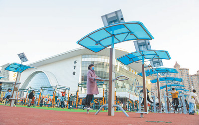 近年來,各地緊貼市民就近健身需求,不斷完善城市體育健身基礎(chǔ)設(shè)施。圖為江蘇省宿遷市宿城區(qū)文體中心,體育健身廣場(chǎng)投入使用,吸引附近市民前來鍛煉。
