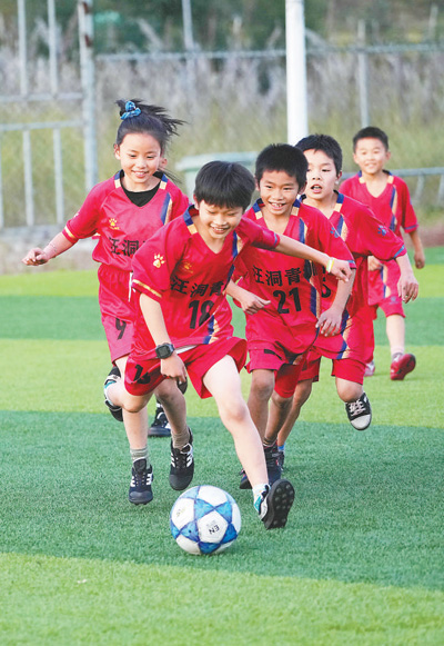 全民健身如火如荼,群眾運(yùn)動(dòng)熱情高漲。圖為廣西壯族自治區(qū)柳州市融水苗族自治縣汪洞鄉(xiāng),少兒足球隊(duì)隊(duì)員在比賽。