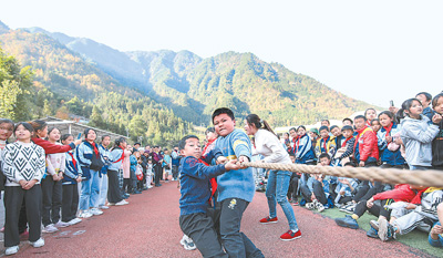 貴州省黔東南苗族侗族自治州從江縣各中小學(xué)校積極開設(shè)體育運(yùn)動(dòng)類課程,幫助山里娃在體育鍛煉中享受樂趣、增強(qiáng)體質(zhì)。圖為從江縣剛邊壯族鄉(xiāng)中心小學(xué)的學(xué)生在校園運(yùn)動(dòng)會(huì)上拔河。