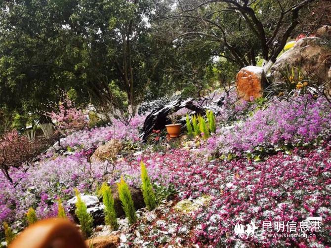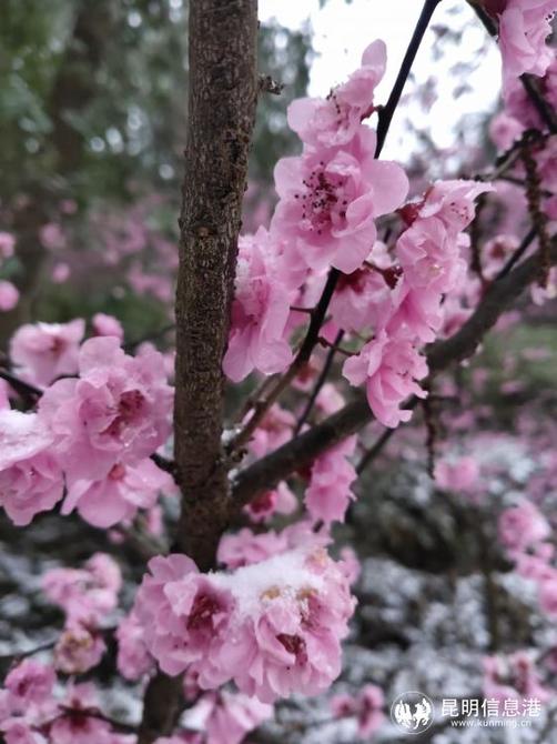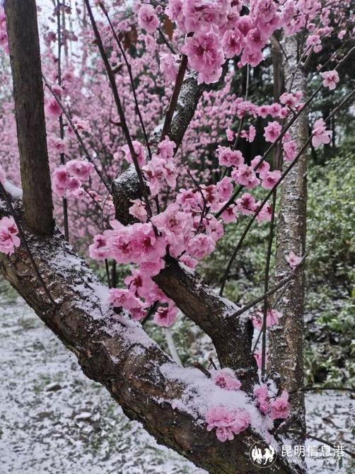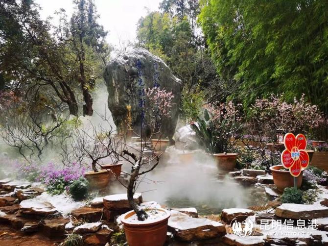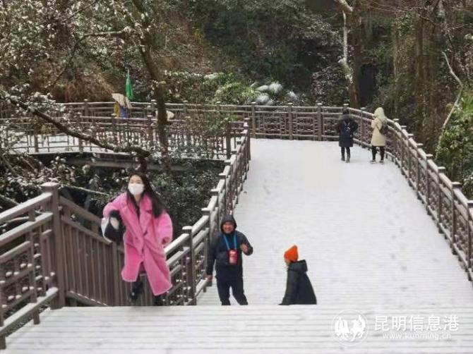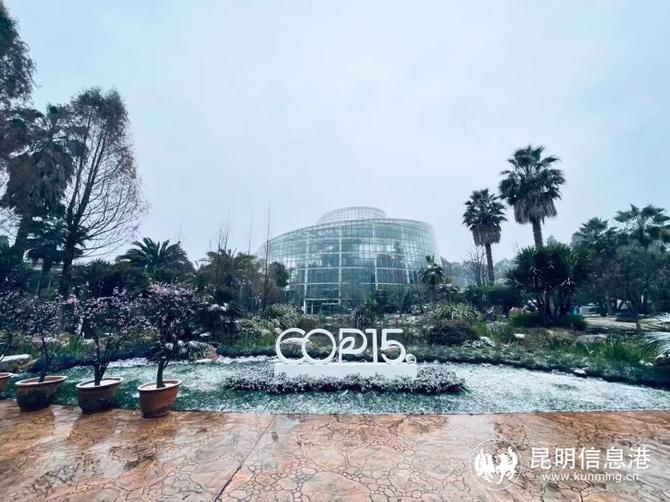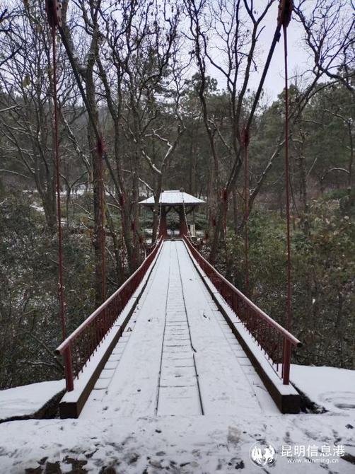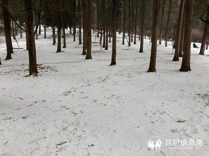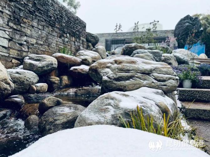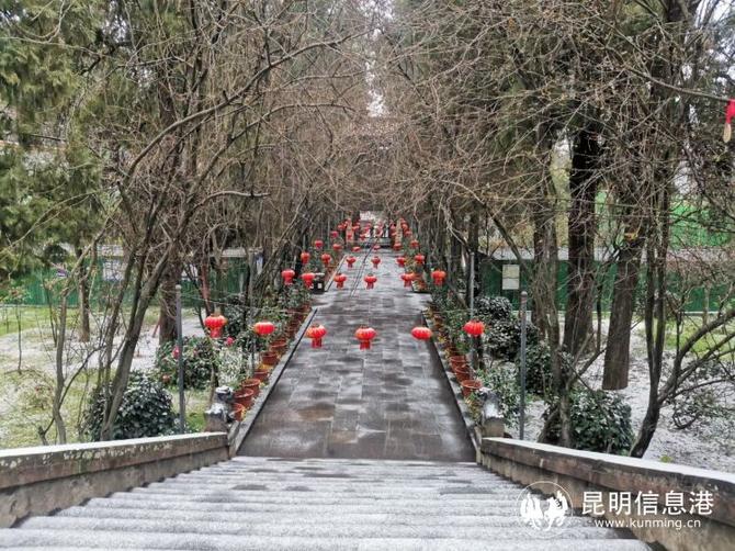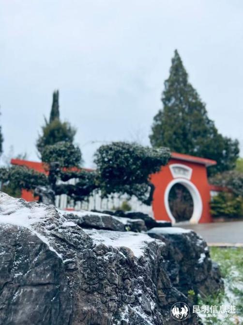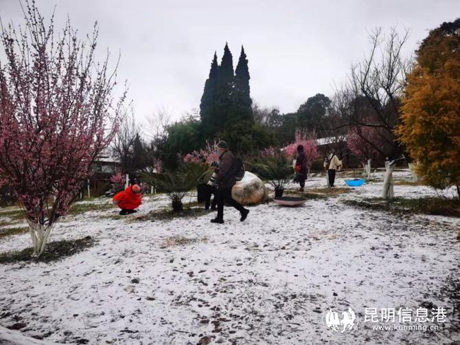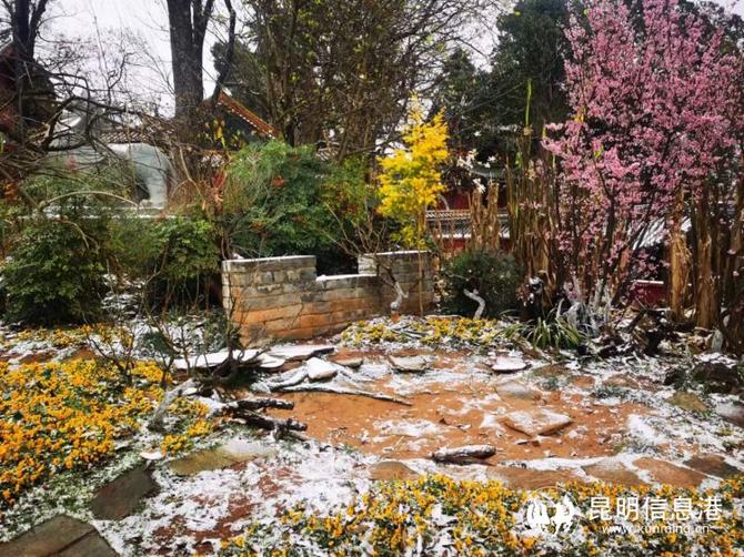 昆明植物園堆起積雪。