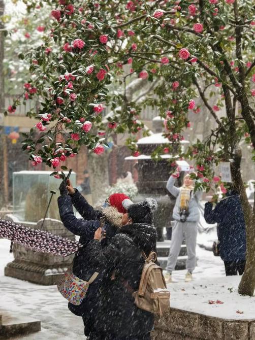 西山華亭寺內(nèi),盛放的山茶花姹紫嫣紅,與皚皚白雪構(gòu)成最美景致,一大早便吸引了游客及市民紛紛前來賞雪。但是受冰雪天氣影響,西山風(fēng)景區(qū)大面積道路冰凌,目前景區(qū)暫停對外開放,環(huán)保大巴暫停發(fā)車,建議登山市民暫不入山。