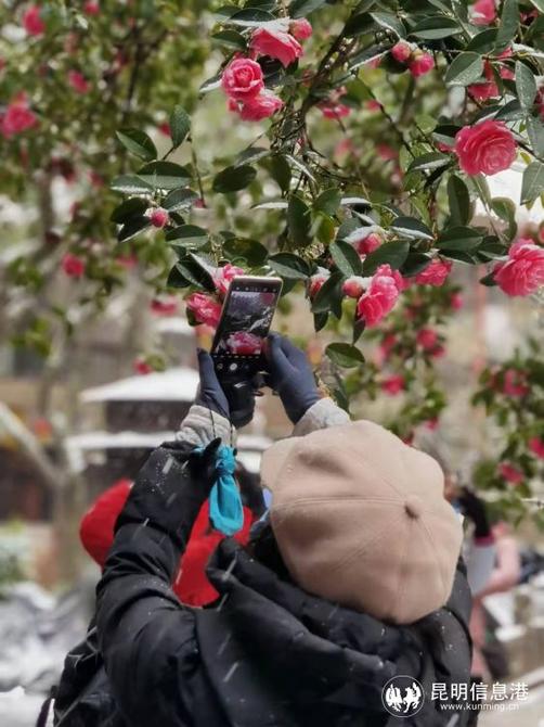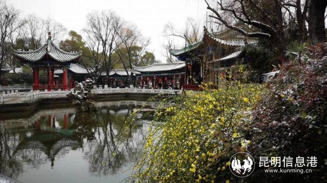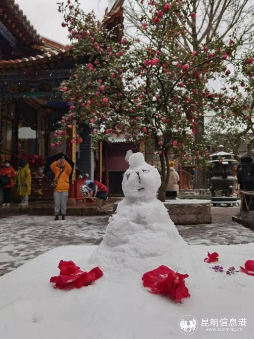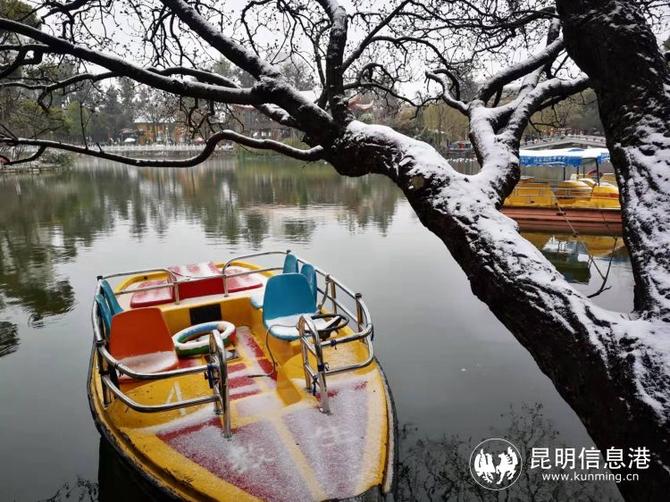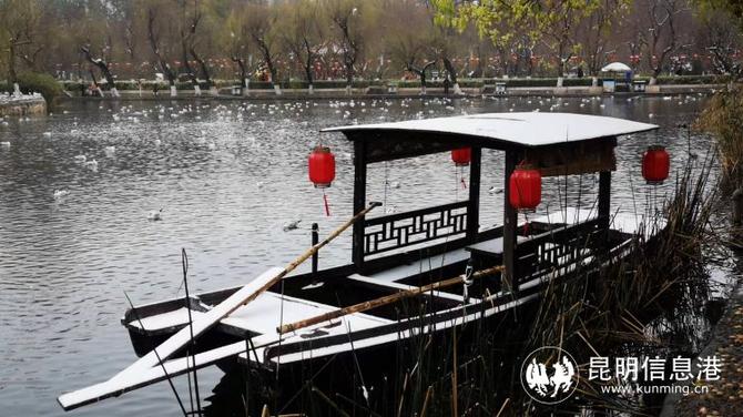 大觀公園牡丹盛開,紅嘴鷗感受到昆明雪景的別樣之美。