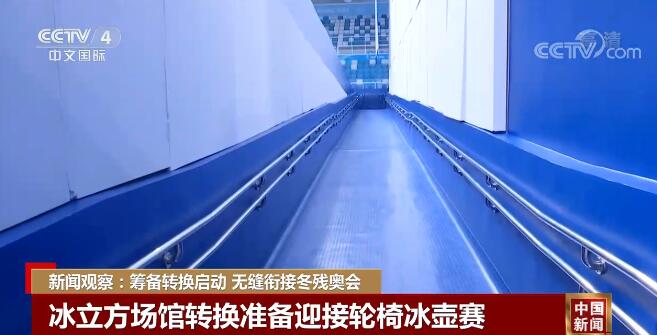 據(jù)了解,北京冬殘奧會部分臨時設(shè)施在冬奧會開始前施工就已完成,接下來的場館轉(zhuǎn)換游刃有余。冰立方特地在場館入口處增加了一個1:20坡度的臨時坡道,坡道總長度達(dá)到了一百三四十米,可供運(yùn)動員瞬間的大流量上下穿行,在去年的輪椅冰壺世錦賽中,運(yùn)動員坡道得到很好檢驗。