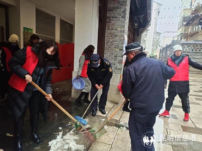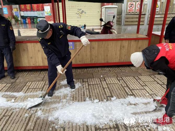 昆明信息港訊 記者曹月 2月22日,昆明市迎來(lái)了一場(chǎng)降雪,雪景雖美,但也給群眾出行和道路交通帶來(lái)不便和安全隱患。為保障轄區(qū)道路暢通和居民的出行安全,景星街社區(qū)居委會(huì)志愿者迅速行動(dòng),組織人力物力,全力清理積雪,為市民出行創(chuàng)造安全整潔的道路交通環(huán)境。