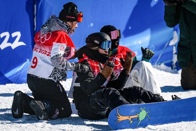 在2月16日的自由式滑雪男子空中技巧決賽中,中國隊(duì)選手齊廣璞摘得金牌,烏克蘭選手亞歷山大·阿布拉緬科(Oleksandr Abramenko)和俄羅斯奧委會選手伊利亞·布羅夫(Ilia Burov)分獲銀牌和銅牌。在最終名次出爐后,他們擊掌并緊緊擁抱,分享喜悅的瞬間。