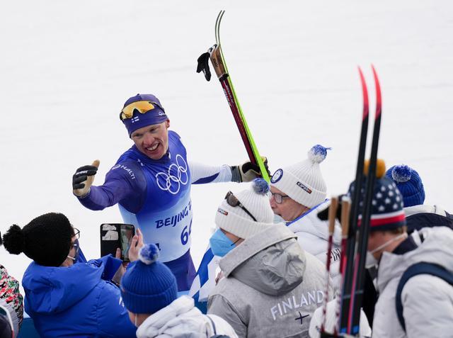 2月11日,芬蘭選手伊沃·尼斯卡寧(上)在比賽后。(圖片來源:新華社)