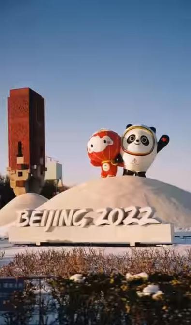 在他分享的視頻中,首先出現(xiàn)的就是可愛(ài)的“冰墩墩”和“雪容融”雕塑,正朝著鏡頭招手。