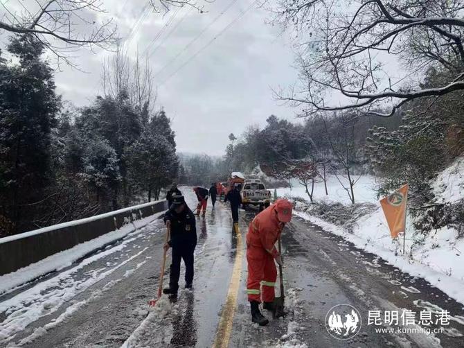 昆明信息港訊 記者李紅鸞 受強(qiáng)冷空氣影響,從2月21日開(kāi)始,昆明市進(jìn)入新一輪大范圍低溫雨雪冰凍天氣,為積極有效應(yīng)對(duì)低溫雨雪冰凍天氣,切實(shí)保障冰雪天氣下轄區(qū)公路安全暢通,盤(pán)龍區(qū)應(yīng)急管理局協(xié)同交運(yùn)、交警、轄區(qū)街道等部門(mén)多方合力開(kāi)展應(yīng)急保障工作。