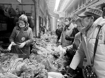 各類“花”菜也新鮮上市,海菜花4元/100克,苦刺花、棠梨花10元/300克。市民吳女士正在購買棠梨花,她將棠梨花稱為“兒時的記憶”。她說,棠梨樹多生長在山林里,想要吃到棠梨花,要冒著被枝干上尖刺刺傷的風(fēng)險,在花苞尚未開放時采摘。“長大后回家鄉(xiāng)的機會少,專門采摘棠梨花不可能。買點來吃,也算回憶往昔了?!眳桥空f。