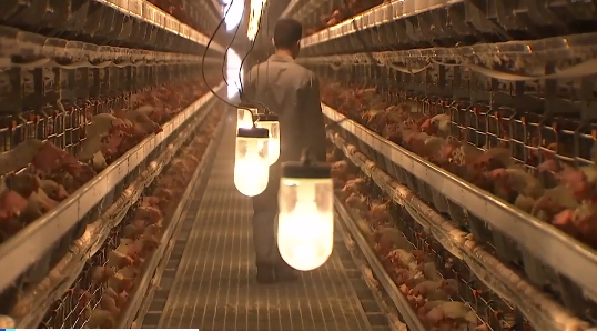 在廣西北海的可生食雞蛋生產基地,飼養(yǎng)員羅創(chuàng)偉正在對雞舍進行日常的巡檢,他告訴記者,雞舍內的濕度、溫度及光照都有嚴格的控制,為了防止將病菌帶入雞舍,他每次都要全身消毒、洗澡、更衣才能進入雞舍。依賴于高度自動化的生產線,雞舍里九萬多只雞,只有他一個人進行管理。