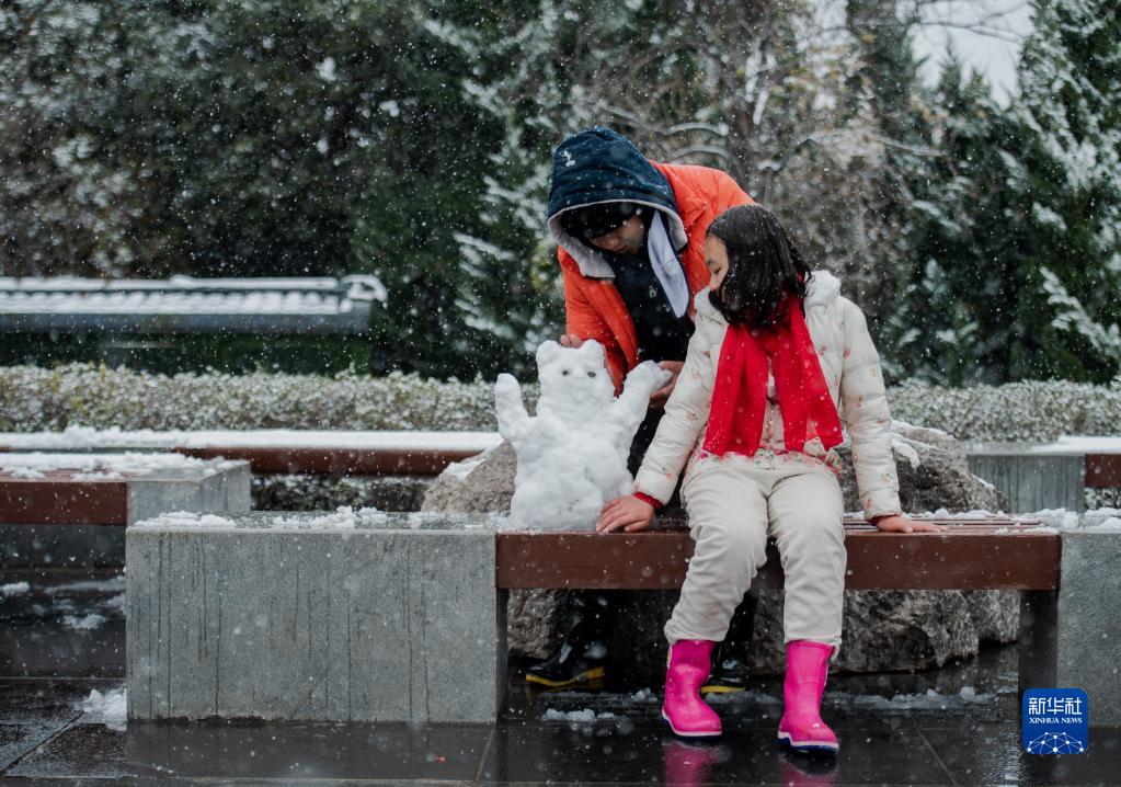 2月22日,市民在海埂大壩堆雪人。當(dāng)日,春城昆明迎來(lái)降雪天氣。新華社記者 王冠森 攝