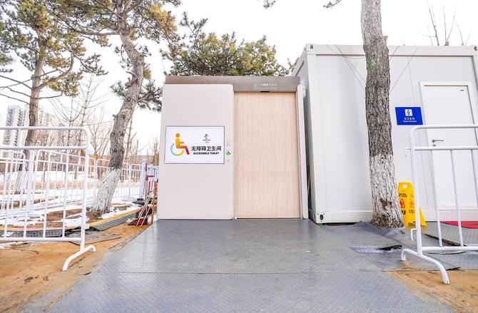 “這樣的衛(wèi)生間一共有13間,其中3間在奧林匹克公共服務(wù)區(qū),服務(wù)觀眾、工作人員,還有10間在北京頒獎(jiǎng)廣場。冬殘奧會(huì)轉(zhuǎn)換期內(nèi),這10間衛(wèi)生間將全部平移到鳥巢附場,服務(wù)開閉幕式當(dāng)天的運(yùn)動(dòng)員們?!迸硭奶锝忉?。