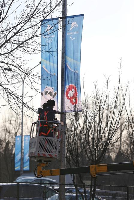2月24日,北京相關(guān)道路景觀已更換為冬殘奧會(huì)標(biāo)志、吉祥物等。