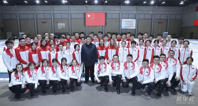 2019年2月1日,習近平在北京看望慰問基層干部群眾,考察北京冬奧會、冬殘奧會籌辦工作。這是1日下午,習近平在位于首鋼園的國家冬季運動訓練中心勉勵正在訓練備戰(zhàn)的運動員、教練員,并同他們合影。
