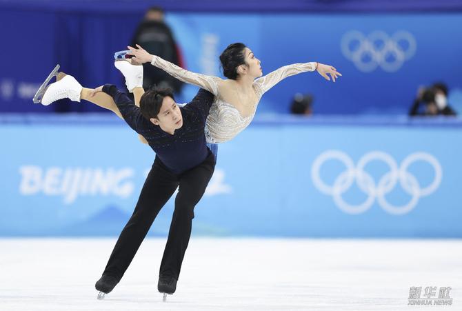 2月19日,中國隊選手隋文靜(上)/韓聰在北京2022年冬奧會上奪得花樣滑冰雙人滑冠軍。