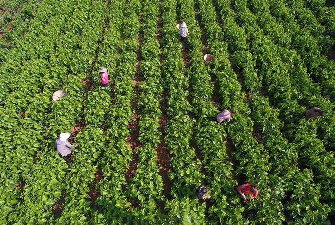 云南尋甸縣金所街道草海子村的農(nóng)婦在采摘蠶桑葉(2020年5月16日攝,無人機照片)。當?shù)卮罅Πl(fā)展蠶桑等特色種養(yǎng)殖和加工產(chǎn)業(yè),帶動農(nóng)民脫貧增收致富。新華社記者 楊宗友 攝