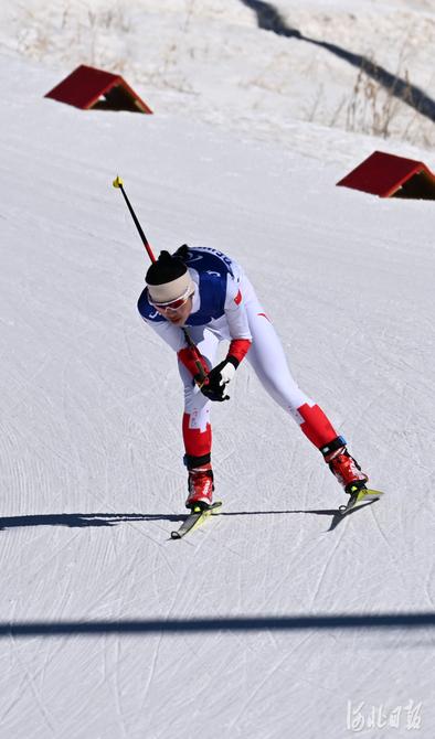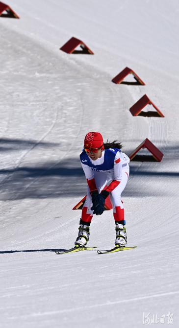 2022年3月5日,中國選手郭雨潔在比賽中。當(dāng)日,北京2022年冬殘奧會(huì)殘奧冬季兩項(xiàng)女子短距離站姿比賽在國家冬季兩項(xiàng)中心舉行。中國選手郭雨潔奪得金牌。河北日?qǐng)?bào)記者 賈恒 攝