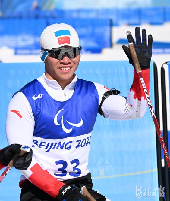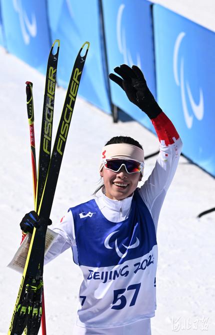 2022年3月5日,中國選手郭雨潔在賽后揮手致意。河北日?qǐng)?bào)記者 賈恒 攝
