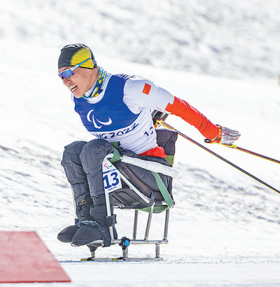 3月6日,在北京冬殘奧會越野滑雪男子長距離坐姿組比賽中,中國代表團運動員鄭鵬以43分09秒2的成績奪得金牌,實現(xiàn)了自己的夢想。2018年平昌冬殘奧會時,他獲得了這個項目的第四名。當時他說:“回去繼續(xù)加把勁,爭取上北京冬殘奧會的領(lǐng)獎臺?!?4年來,他在訓練中嚴格要求自己,讓每一次出發(fā)都成為一次突破自我、跟自己較勁的過程。鄭鵬說:“有一段時間感覺自己的水平?jīng)]有提升,有點焦慮,后來還是努力堅持下來。追求夢想讓自己變得更強大?!?/p>