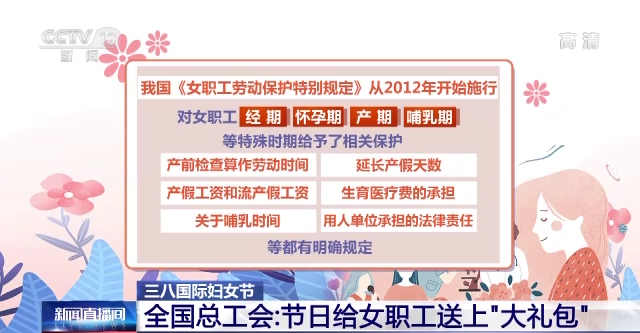 從3月8日起,貴州省、湖北省兩省地方性《女職工勞動(dòng)保護(hù)規(guī)定》開(kāi)始施行,《規(guī)定》圍繞女職工經(jīng)期、孕期、產(chǎn)期、哺乳期、更年期的生理特點(diǎn),在降低女職工勞動(dòng)強(qiáng)度、變更勞動(dòng)崗位、獲得必要的休息時(shí)間等方面都作出相關(guān)規(guī)定。