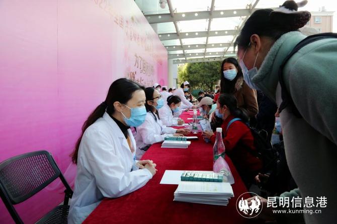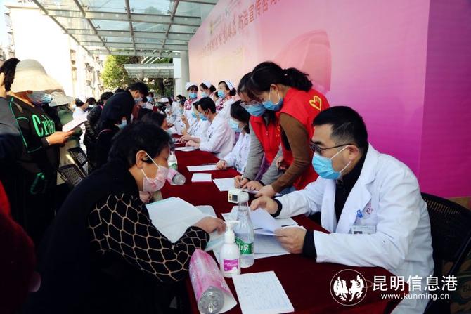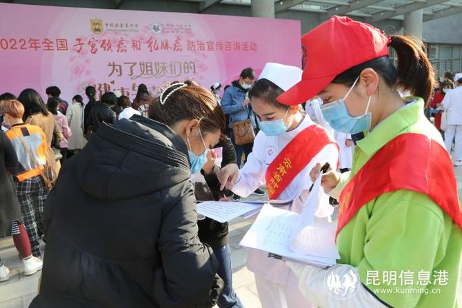 昆明信息港訊 記者劉瑩 盧芝珍 在“三八”國際勞動婦女節(jié)到來之際,2022年“為了姐妹們的健康與幸?!比珖訉m頸癌和乳腺癌防治宣傳咨詢活動之云南省腫瘤醫(yī)院、昆明醫(yī)科大學第三附屬醫(yī)院兩癌免費篩查義診活動在醫(yī)院門診樓前舉行。