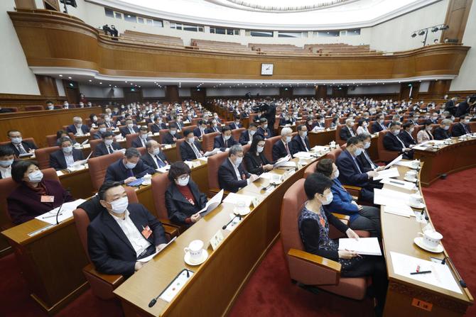 3月7日,全國政協(xié)十三屆五次會(huì)議舉行視頻會(huì)議。會(huì)議在全國政協(xié)機(jī)關(guān)設(shè)主會(huì)場,在委員駐地設(shè)分會(huì)場。這是主會(huì)場。新華社記者 劉彬 攝