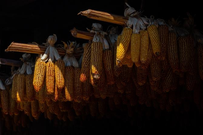 走在拉乍們鋪滿青石板的鄉(xiāng)間小道上,一幅幅精美的彝族墻繪躍然眼前,村舍錯落有致,民族風情古樸濃郁。走進彝家門,家家戶戶堆滿了幾十袋土豆,房梁上的一串串玉米“門簾”,在陽光下閃著金燦燦的光芒。結合拉乍們村冷涼濕潤、光照充足的氣候條件,當地群眾因地制宜發(fā)展農業(yè)和鄉(xiāng)村旅游,走出了一條脫貧致富與民族團結進步深度融合的民族進步之路。