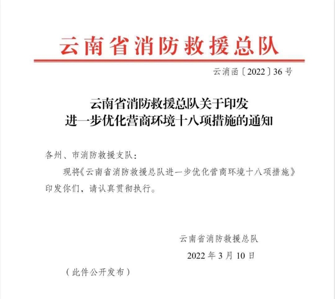 附件:《云南省消防救援總隊進一步優(yōu)化營商環(huán)境十八項措施》
