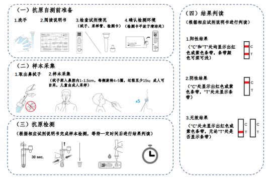 2.了解檢測(cè)流程。仔細(xì)閱讀抗原自測(cè)試劑配套說明書及抗原自測(cè)相關(guān)注意事項(xiàng)。