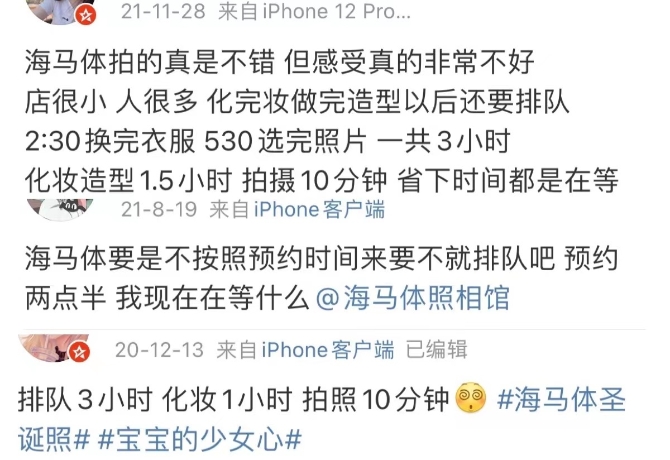不過(guò),作為一門(mén)極度依賴(lài)線上營(yíng)銷(xiāo)的新式照相生意,消費(fèi)者口碑成為驅(qū)動(dòng)年輕人走進(jìn)海馬體照相館的重要因素。種草拔草,一念之間。而在微博、抖音、小紅書(shū)、知乎等平臺(tái),并不乏“海馬體翻車(chē)”“海馬體避雷”的討論。如何提升消費(fèi)者體驗(yàn),應(yīng)成為海馬體照相館擴(kuò)張的必經(jīng)之路。