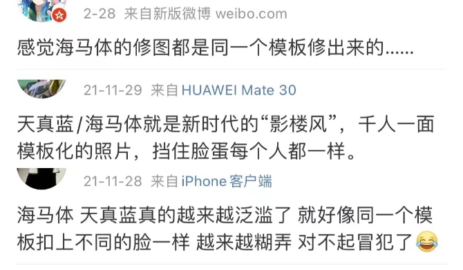 大量消費(fèi)者在社交平臺(tái)上分享著自己慘不忍睹的翻車(chē)經(jīng)歷:“化妝兩小時(shí),拍照5分鐘,而且姿勢(shì)都很模式化”“攝影師完全按照樣片的姿勢(shì)給我拍攝,沒(méi)有創(chuàng)新”“我全程看著修圖師隨便磨皮推臉,根本不管你臉部線條凸出或者凹陷的問(wèn)題,是審美太低還是水平太差?”。