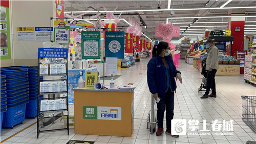 隨后,記者走訪了沃爾瑪人民西路店和家樂福云紡店。在沃爾瑪人民西路店,記者看到入口處除了常規(guī)的提示牌、體溫槍等防疫工具外,還擺放了口罩販賣架提供給有需要的顧客。相關(guān)工作人員告訴記者,如有“黃碼”顧客來店,工作人員會對其進行登記并阻攔進店。