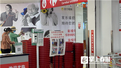 在家樂福云紡店,入口處放置了一塊明顯的提示板,上面寫到“云紡店公共區(qū)域今日已消毒”并附有相關(guān)人員消殺的工作照?!艾F(xiàn)在我們每隔2小時就會對全場進行一次消殺,確保疫情防控落實到位。”相關(guān)人員告訴記者。