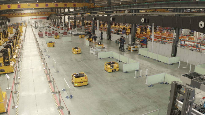 沈陽海爾冰箱智能工廠一棟占地7.8萬平方米的廠房里,智能運(yùn)送設(shè)備在地上和空中來回穿梭,生產(chǎn)線上盡是忙碌的機(jī)械手,每10秒就能下線一臺冰箱。