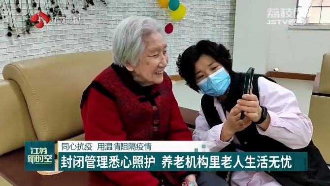 為加強(qiáng)養(yǎng)老院、福利院等重點(diǎn)場(chǎng)所防控,嚴(yán)防出現(xiàn)聚集性疫情,目前江蘇2240家養(yǎng)老機(jī)構(gòu)全面實(shí)施封閉式管理。視頻團(tuán)圓、微信報(bào)平安……嚴(yán)格的防控措施之下,養(yǎng)老護(hù)理員們用愛(ài)與陪伴筑起老人身邊的“防護(hù)墻”。