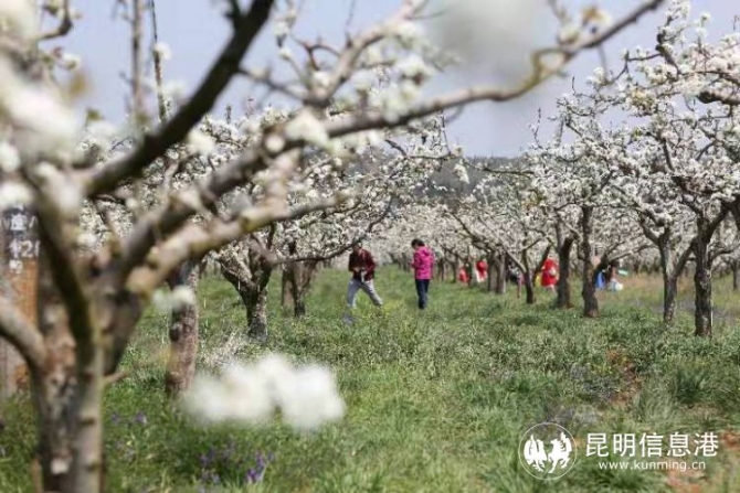 昆明信息港訊 記者楊雁 3月,春風(fēng)一撫,雪白的梨花綻放枝頭,位于安寧市八街街道辦事處的6800畝梨花迎來(lái)盛花季。